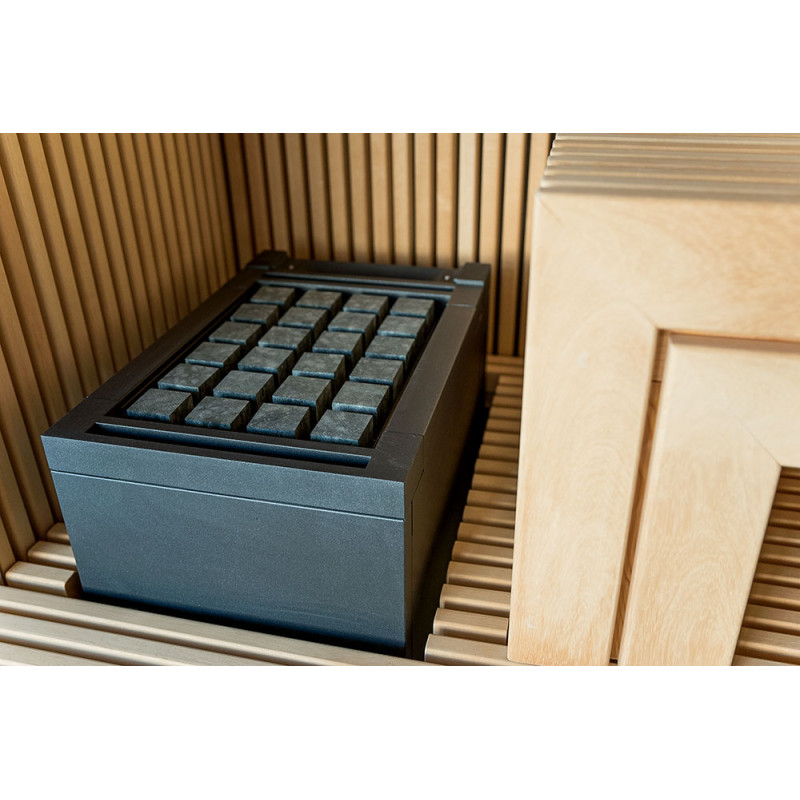 - a kályha egyedi kocka alakú kövekkel rendelkezik, de emellett jadeit kövekkel (40 kg) is fel lett szerelve - az állandó hőmérséklet fenntartása és a kényelmes szauna élvezet érdekében