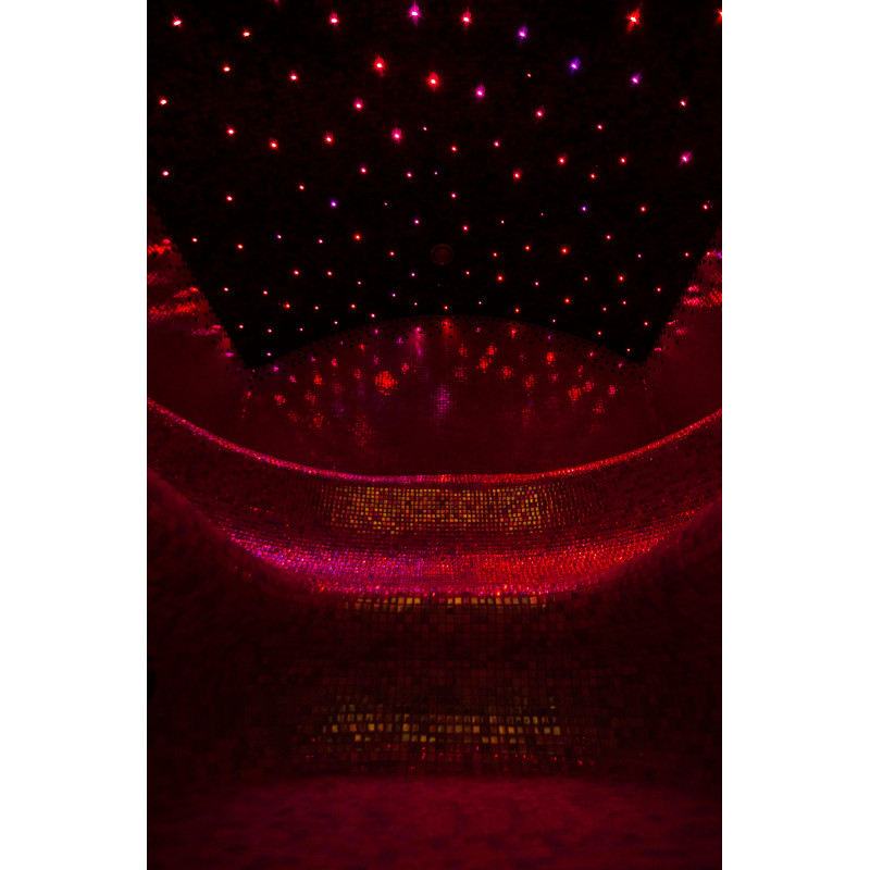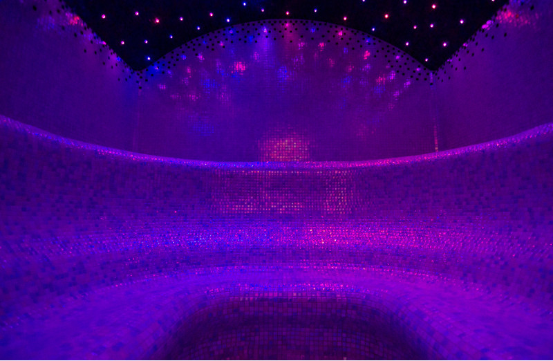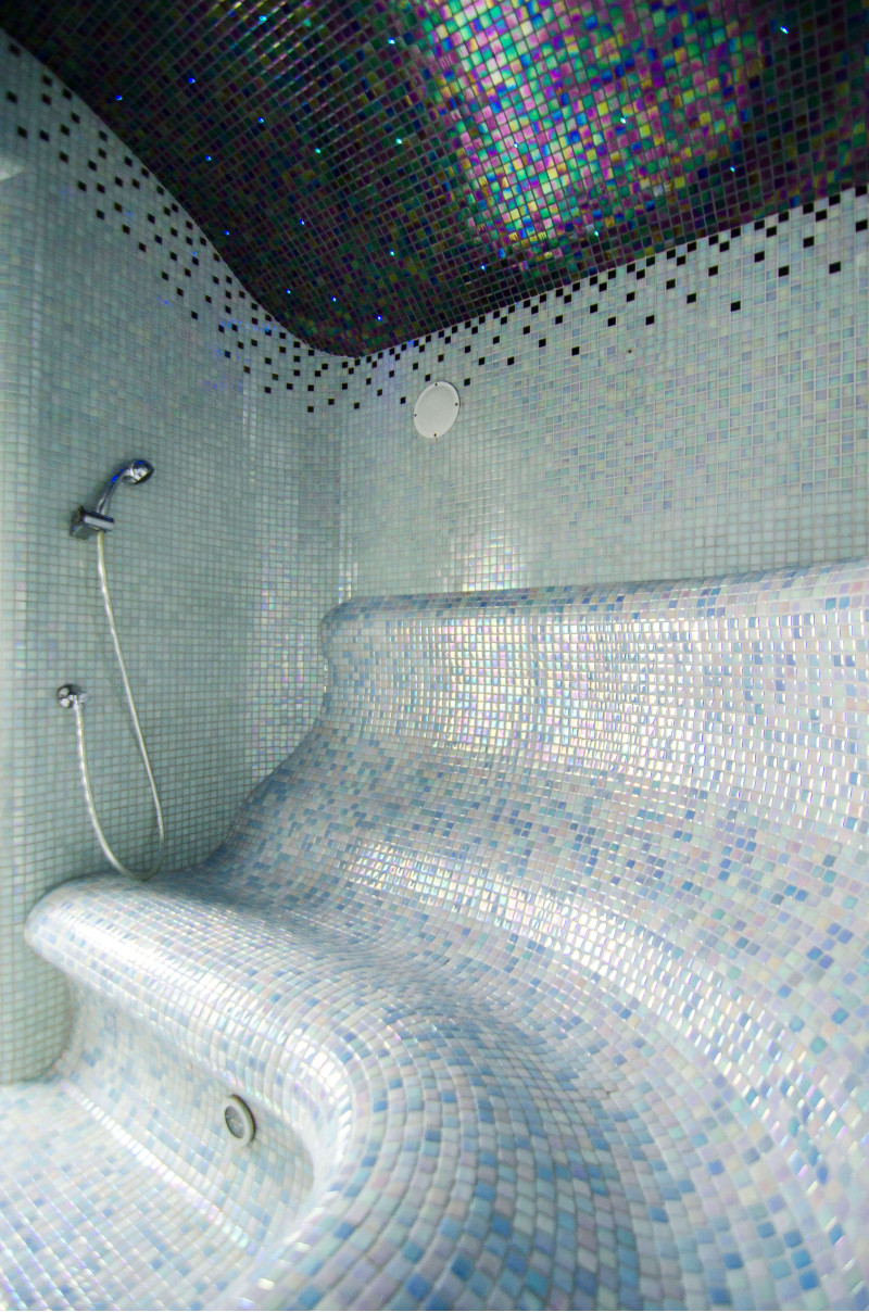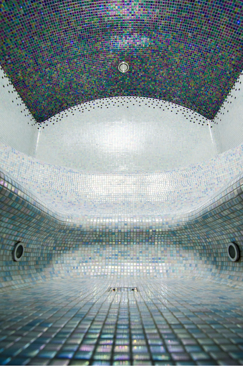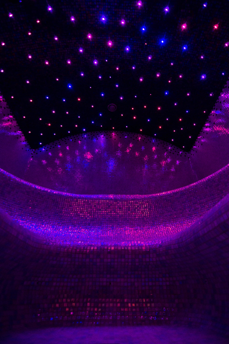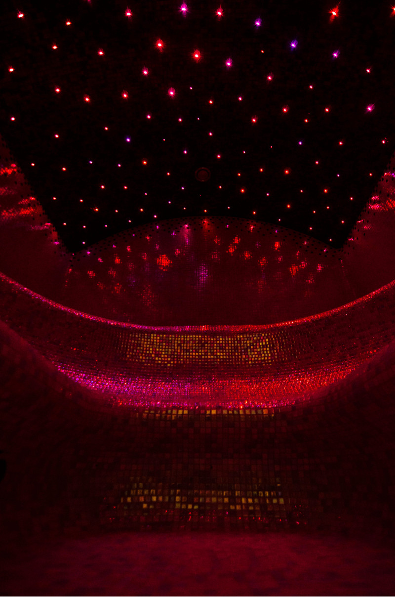 A padokat, a padlót és a falakat pasztell színű mozaiklapok díszítik. A mennyezetet színes csempék borítják, amelyek a mennyezeti világítással együtt még lenyűgözőbb látványt nyújtanak.
