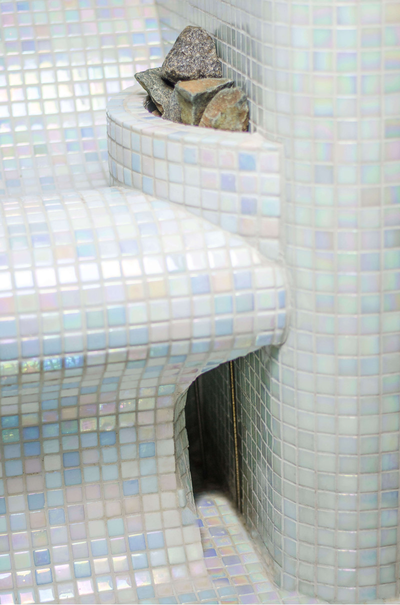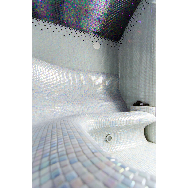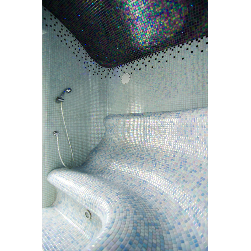 A gőzszauna padok, falak és mennyezetek egyedileg készülnek speciális extrudált polisztirolból. A mennyezetek minden gőzkabinra jellemzően ív alakúak, így nem tud rájuk páralecsapódni. Ülőpozíciók, ívelt, kényelmes formájú padok a kellemes pihenéshez a szaunában. A padokat víztelenítik, nehogy verejték és nedvesség gyűljön fel rajtuk.