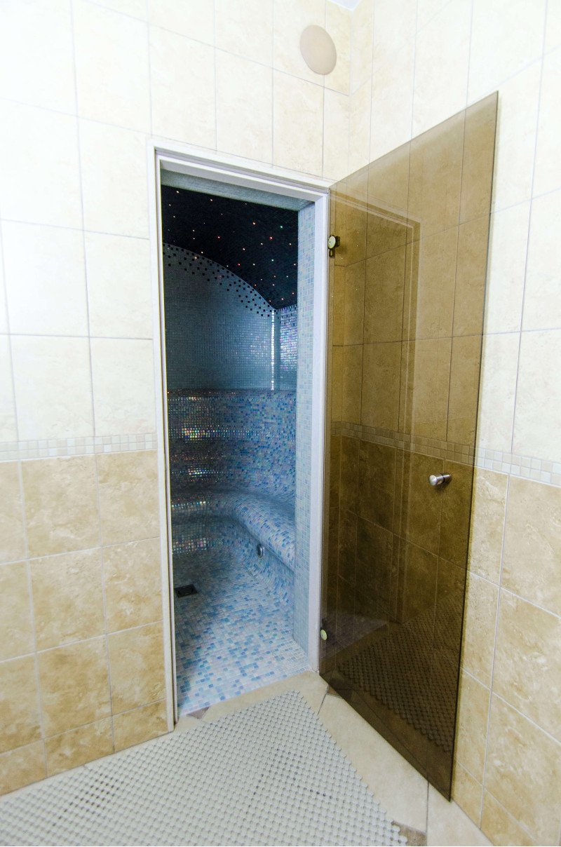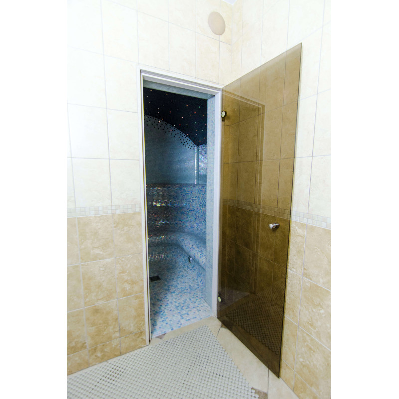 Az üvegajtók egyedi megrendelésre készülnek. Az ajtó ellenáll a nedvességnek és a hőmérséklet-ingadozásoknak. Ajtókeret - márvány.