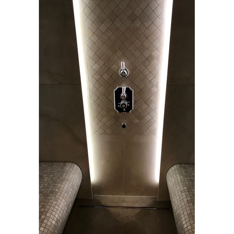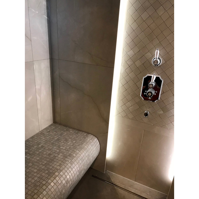 A fűtött szaunában az elektromosan fűtött padló és padok extra kényelmet biztosítanak.