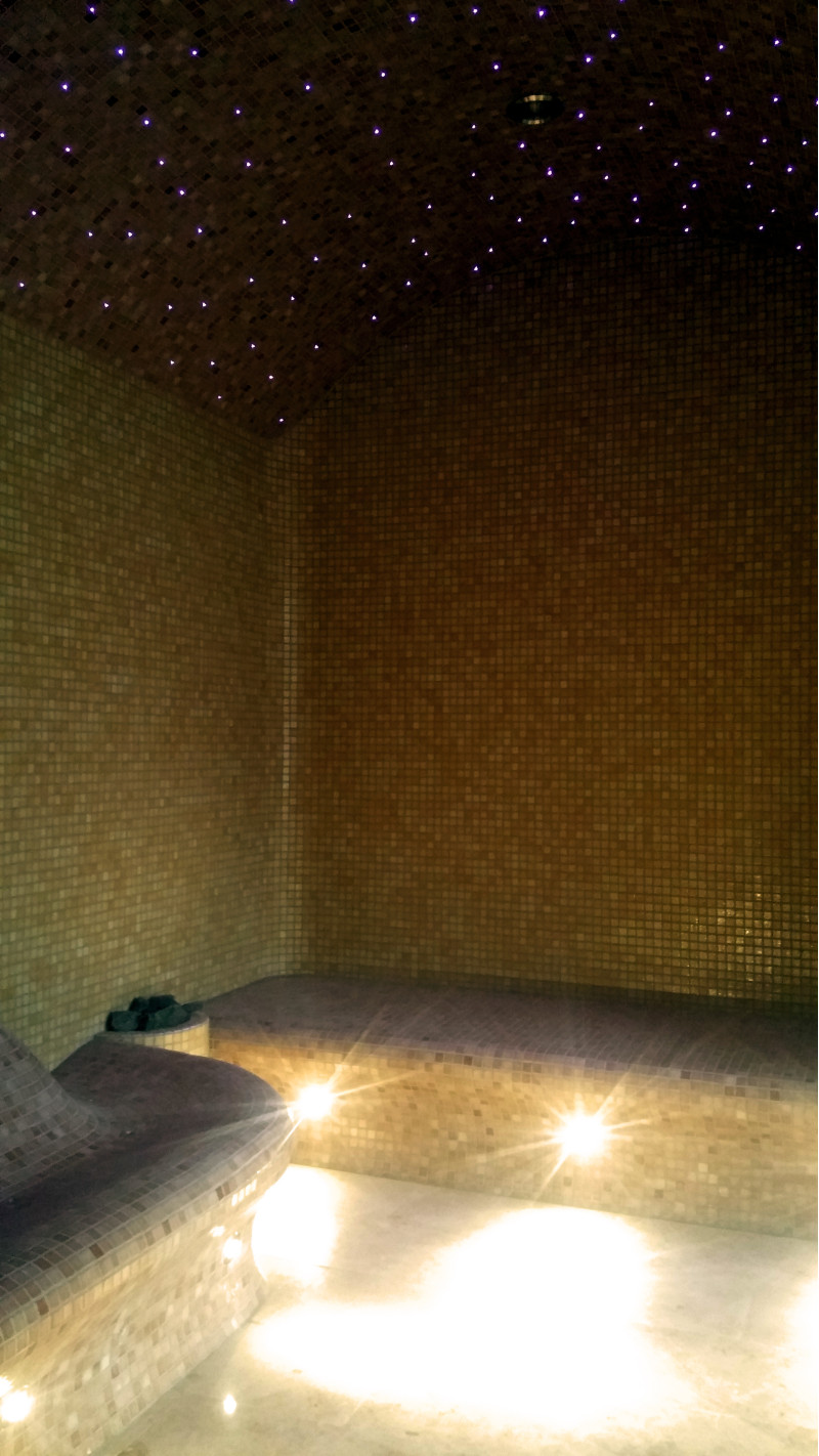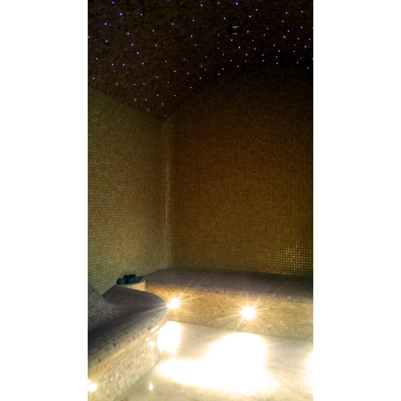 Száloptikai világítási rendszer a mennyezethez - "csillagos ég". A padok alatt LED világítás szolgálja a padló megvilágítását.