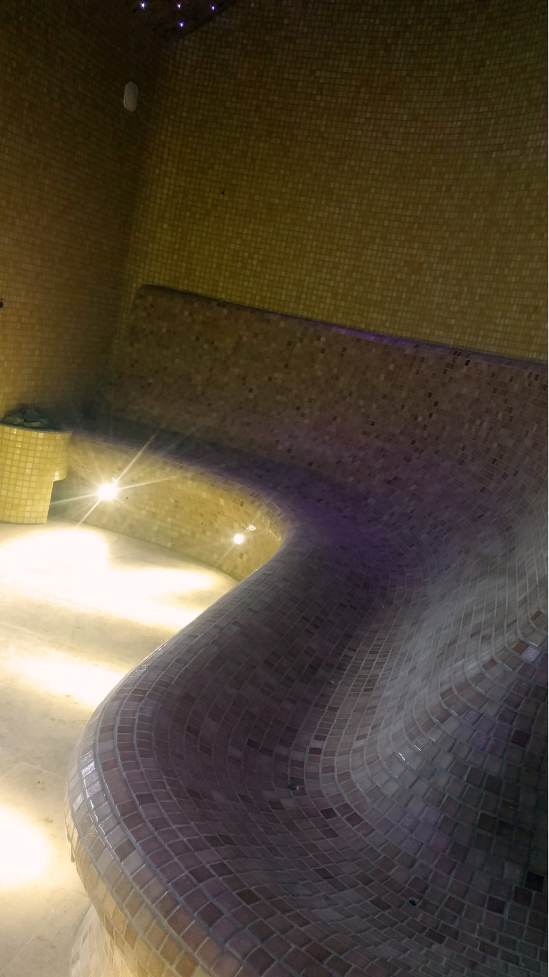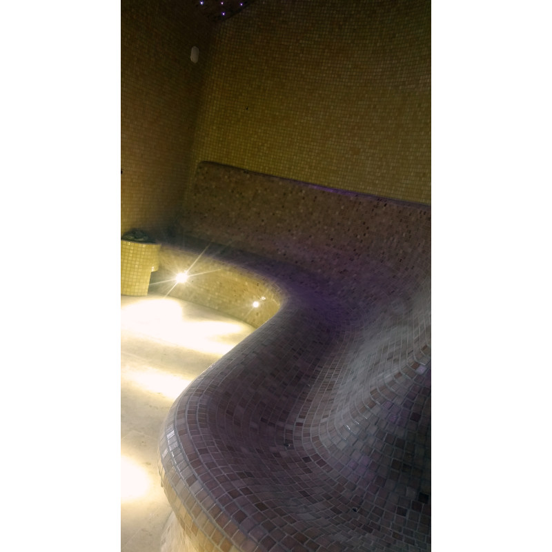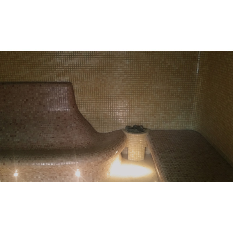 A gőzszauna padok, falak és mennyezetek egyedileg készülnek speciális extrudált polisztirolból.