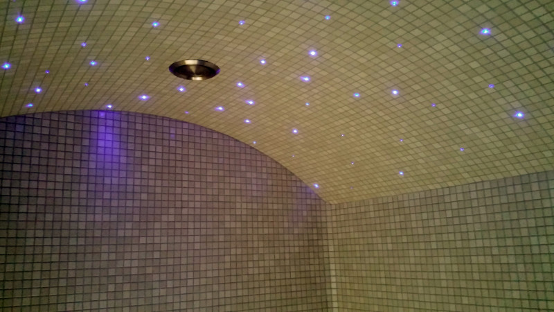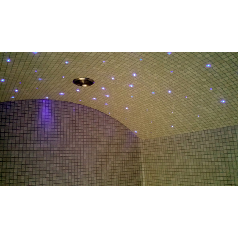 A világítási rendszer "csillagos ég". Ez a világítás lenyűgöző és hangulatos látványt nyújt a gőzszaunában. A nyugágyak alatt világítás világítja meg a padlót.
