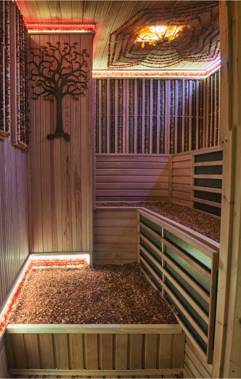 A klaipėdai „Pasakėlė” magánóvoda szaunájának rekonstrukcióját végezték el. A borostyánból készült munkákat, megoldásokat a megrendelő készítette.
