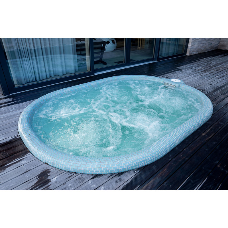 A medence masszázs vízsugarakkal, víz alatti LED RGB világítással és medencefüggönnyel van felszerelve, amely megakadályozza, hogy szennyeződés kerüljön a medence vizébe.