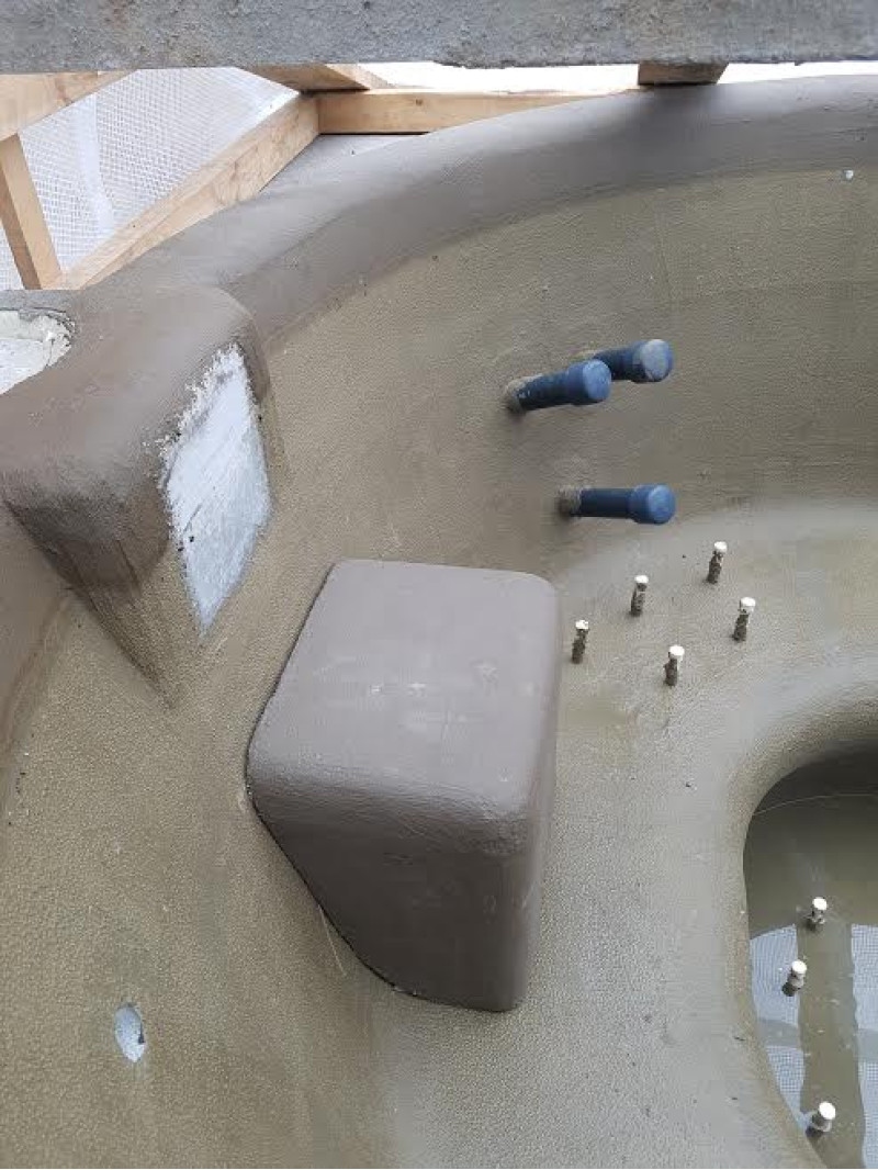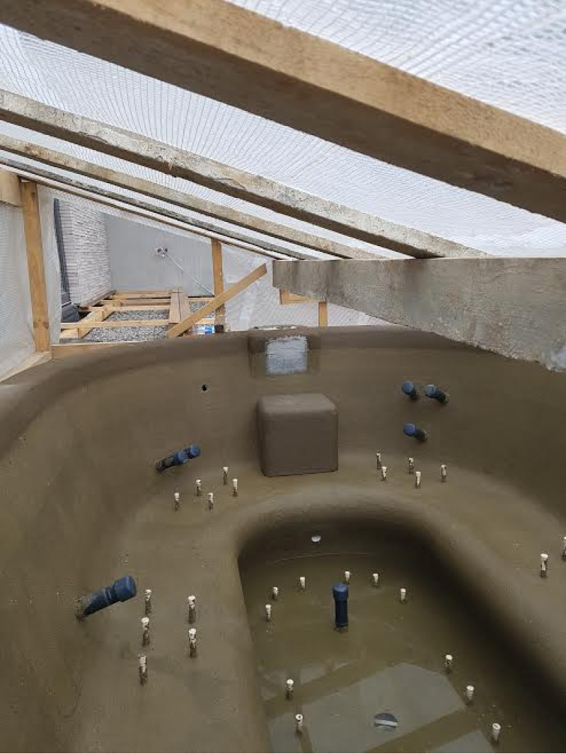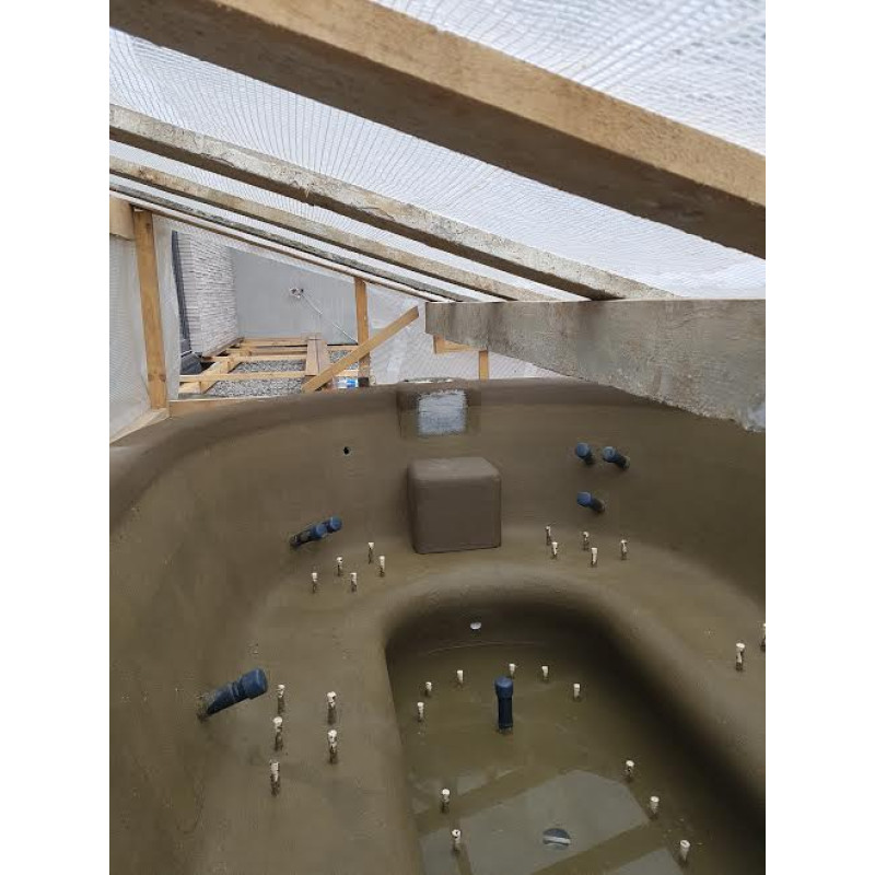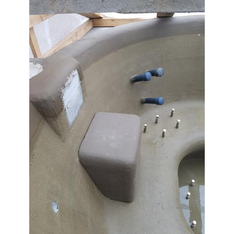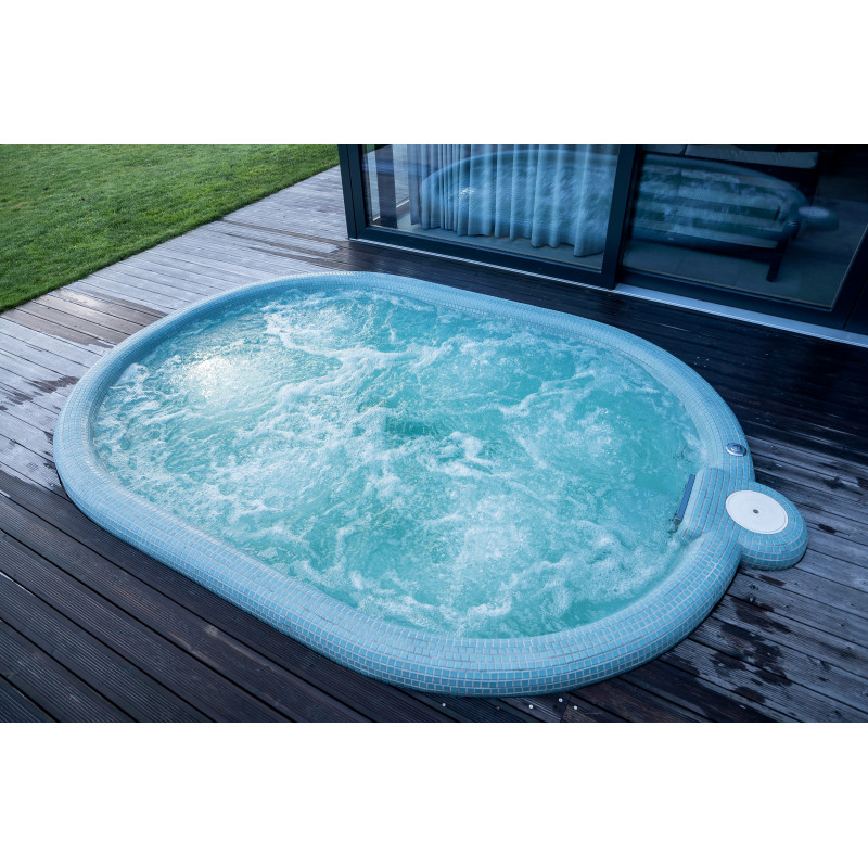 A medence formák speciális extrudált polisztirolból készülnek, egyedi megrendelés alapján. A belső teret zúzott üvegmozaik csempék borítják.