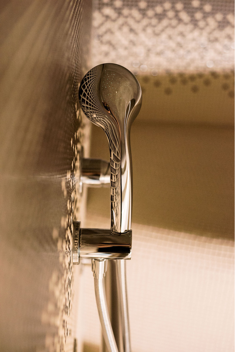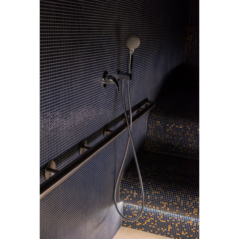 - Az ágyak alá nedvesség- és hőmérsékletálló lámpatestek vannak felszerelve. A falra szerelhető lámpatest sarka megfelelő fekete égerfa borítót választott.