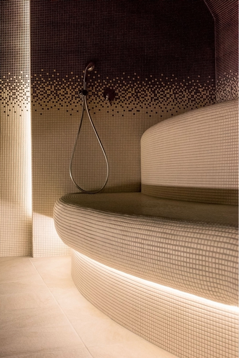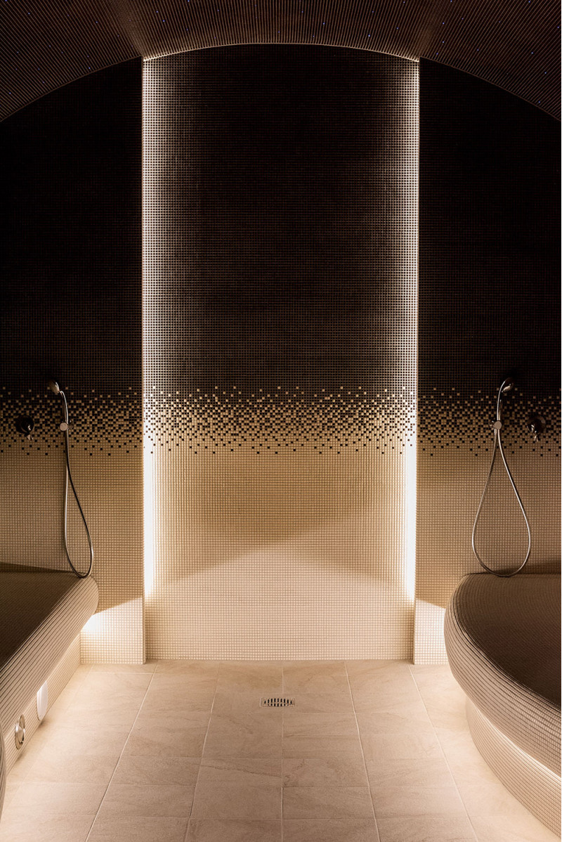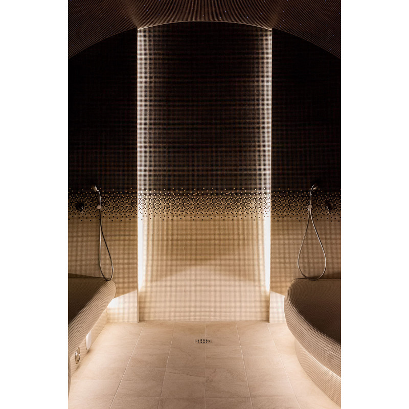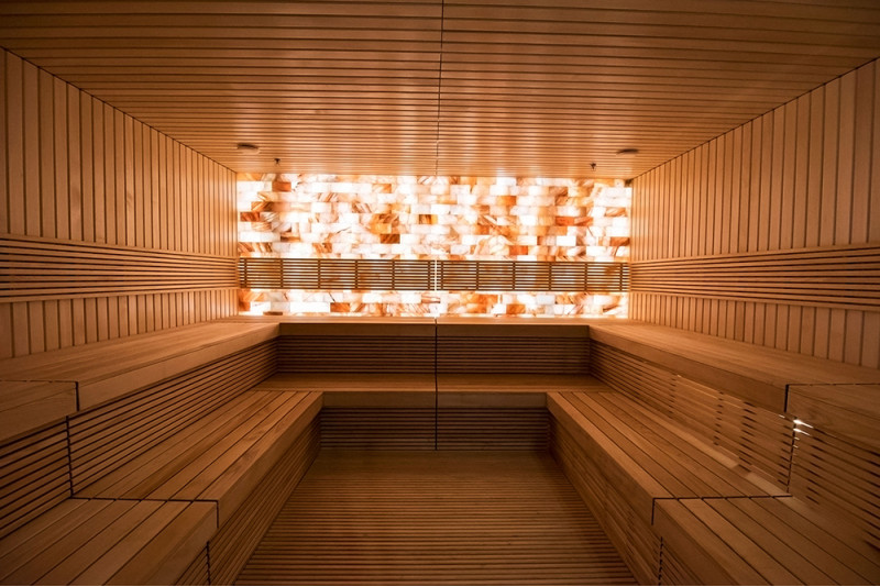 - Az ágyak alá nedvesség- és hőmérsékletálló lámpatestek vannak felszerelve. A LED -es világítás a himalájai sófal mögé van felszerelve.