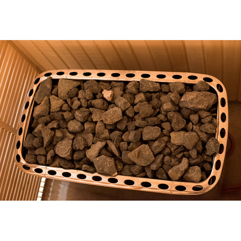 - A tűzhely tele van 80 kg szaunakővel.