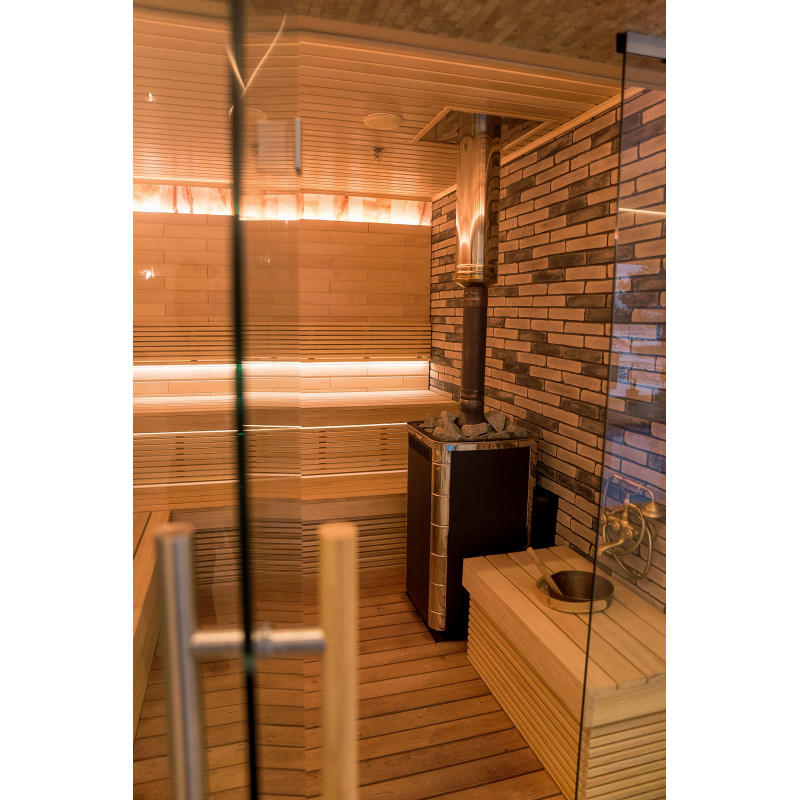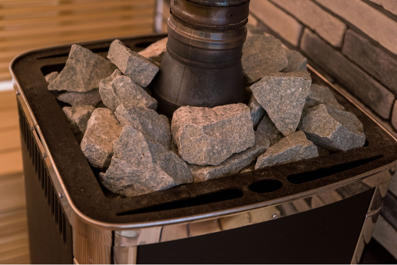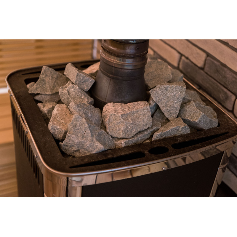 Fa szauna kályha - TMF KALINA VITRA. A kályha kevert kövekkel van megtöltve - finn olivin és törött jadeit.