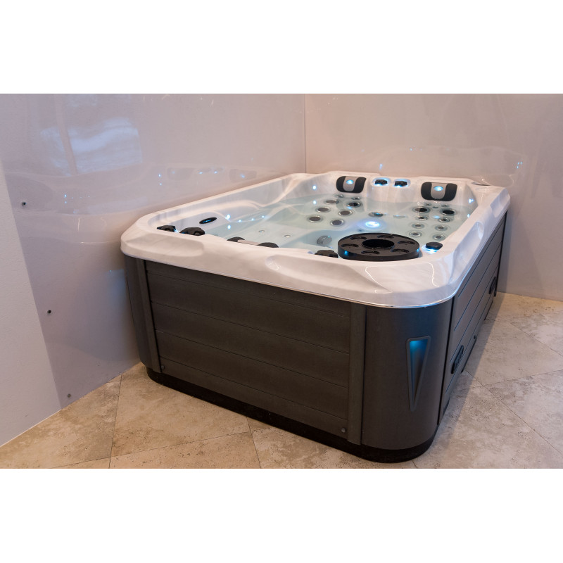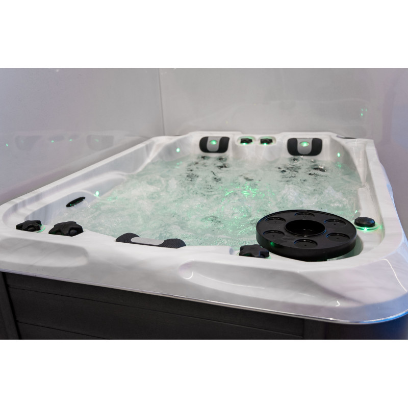 SPA "Soulmate" hidromasszázs medence - kompakt, amely két kényelmes fekvő területet kombinál egy intenzív, egyedi "Aqua Rolling Massage™" masszázzsal. Mindkét napozóágy kényelmes ülőalkalmatosságot kínál különböző magasságú emberek számára, valamint különböző masszázsterápiákat.