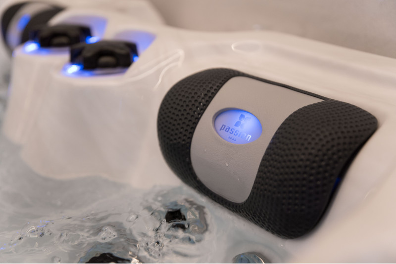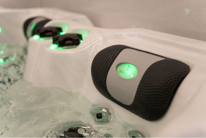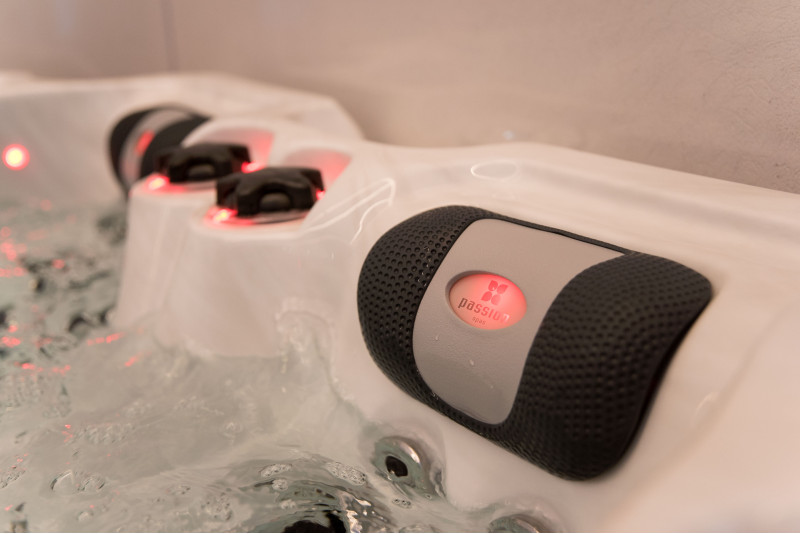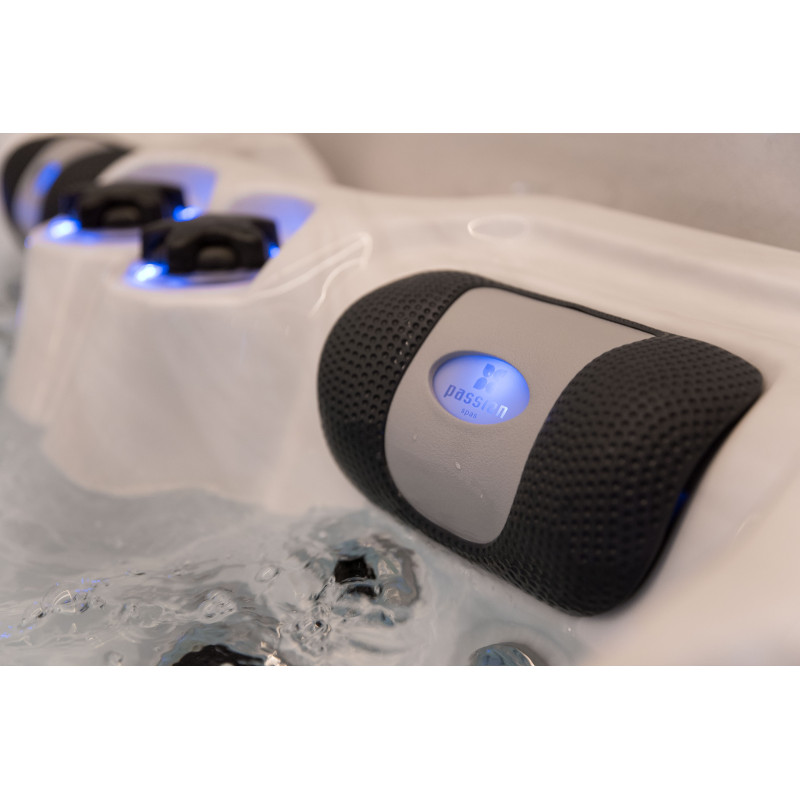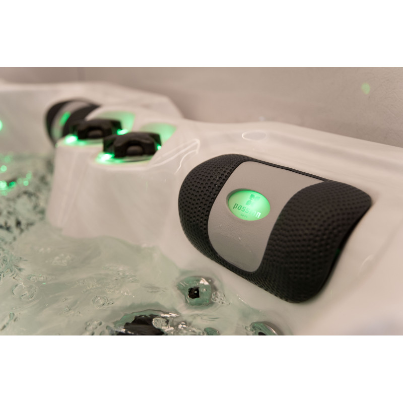 A gyógyfürdő LED-es színes világítással van felszerelve, ami sötétben különösen szépnek tűnik. Minden kezelőszerv és párna kiemelő világítást biztosít, amely a Passion Spas integrált hangrendszerével kombinálva varázslatos élményt nyújt.