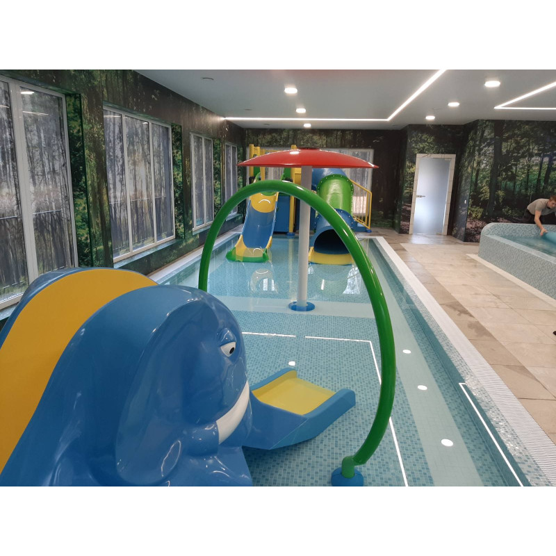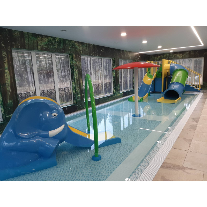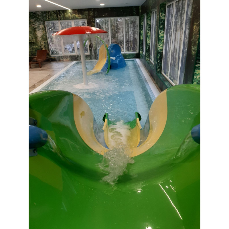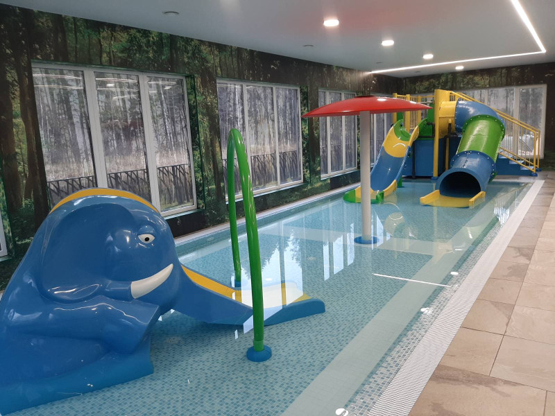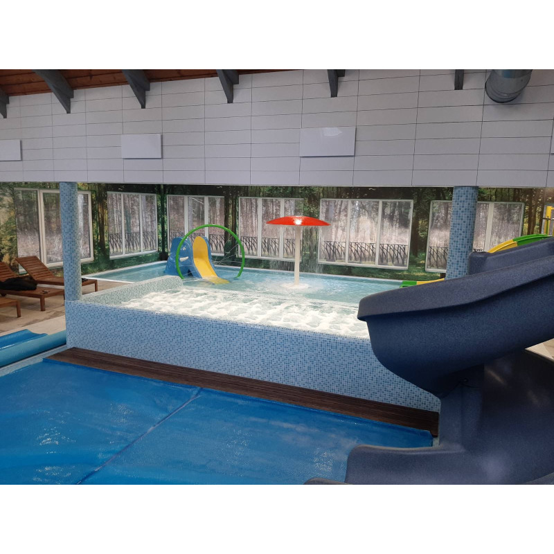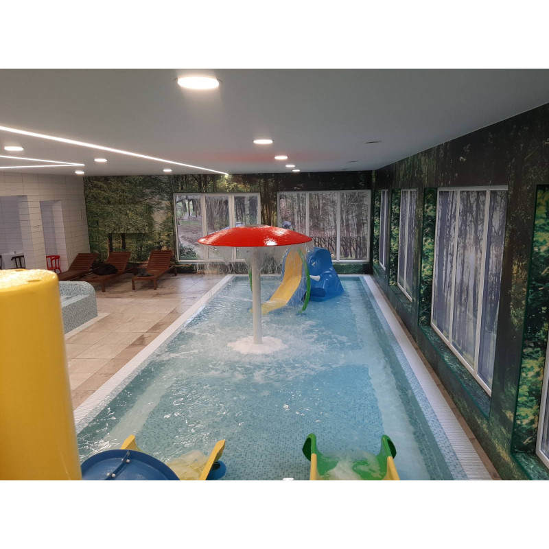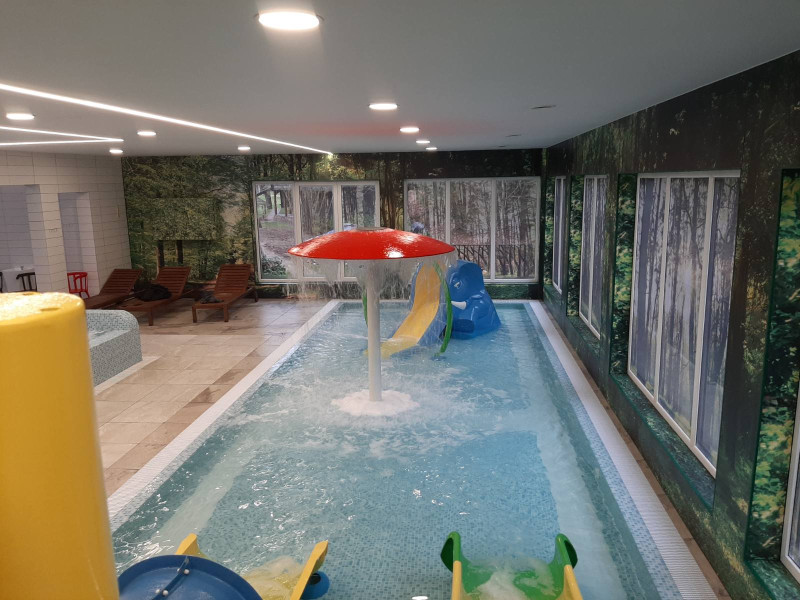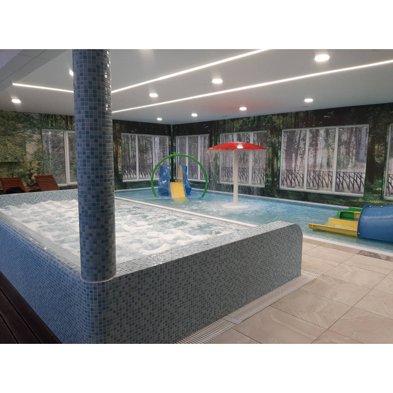 - Úszómedence (6 m hosszú) vízesésekkel, víz alatti gejzírekkel.