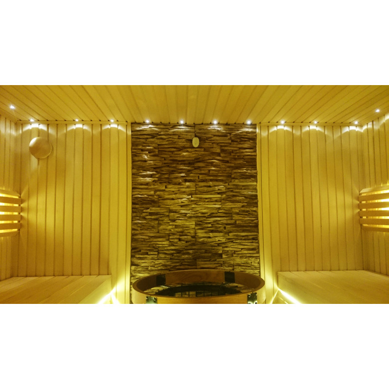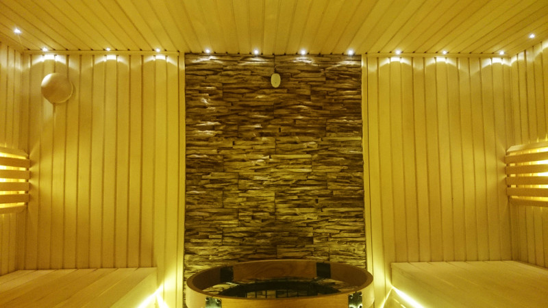 A szauna díszítésére a legmagasabb minőségű mészfát választották.