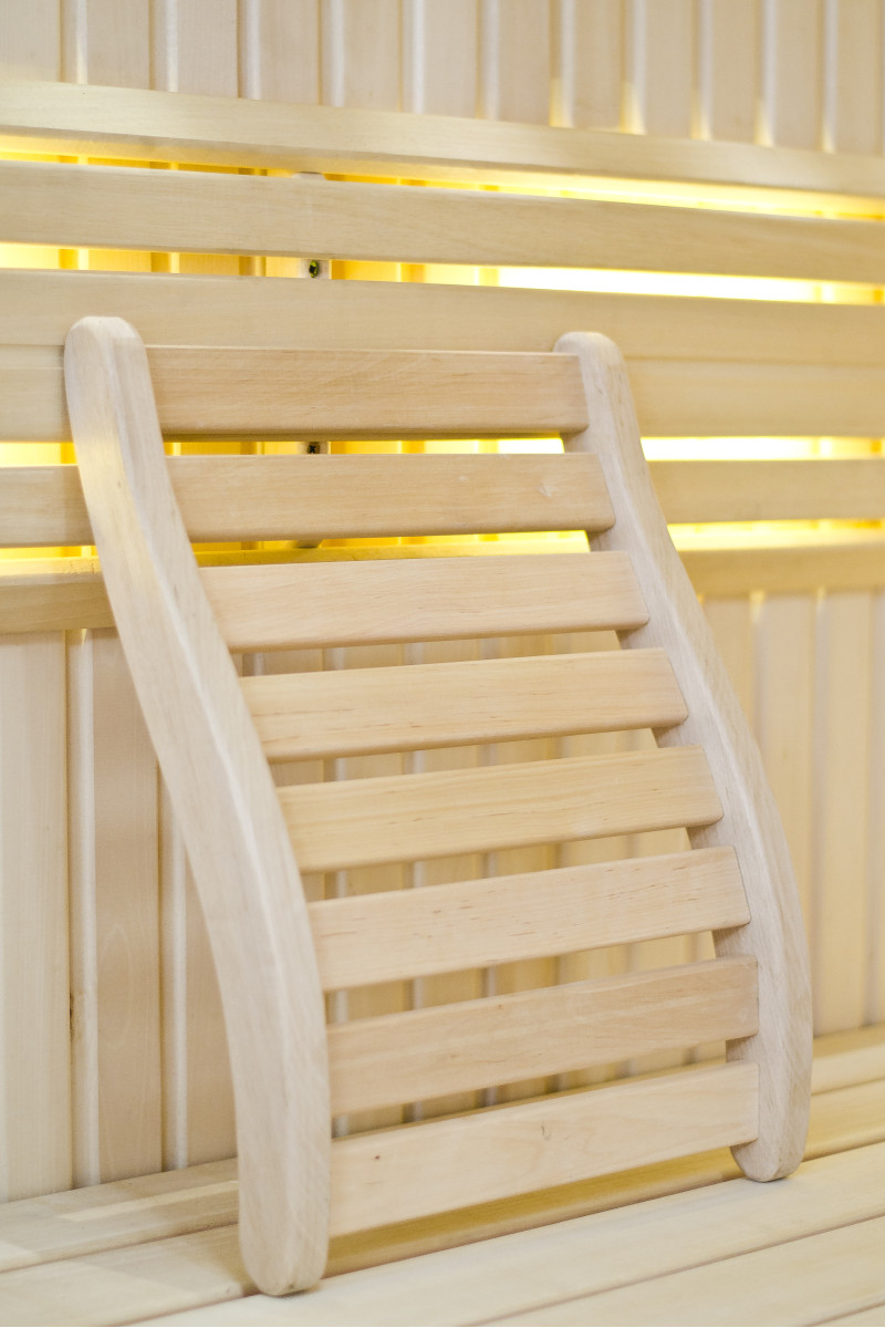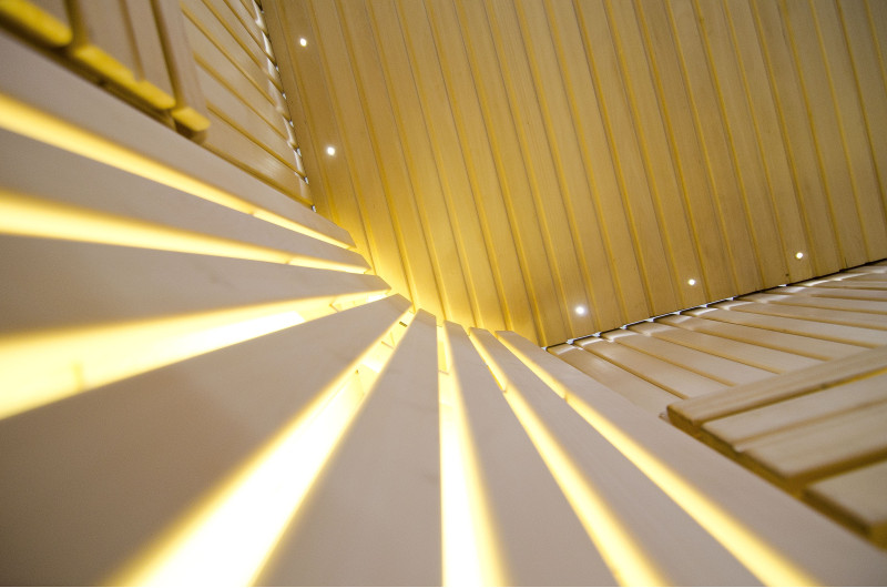 A falak a legkiválóbb minőségű világos hársfából készültek, a padok és a háttámlák pedig afrikai abachi fából készültek, ami nem nagyon melegszik fel, így különösen kellemes és kényelmes ülni.