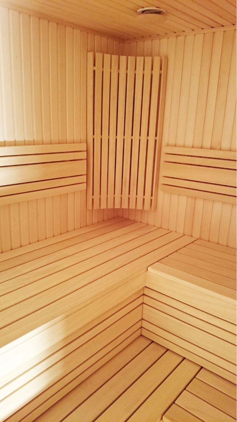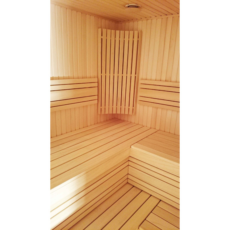 A szauna mennyezetét és falait hársfa burkolat borítja, akárcsak a tartók, a padlórácsok és a fűtőkerítések. A szauna nyugágyak a legjobb minőségű abachi fából készültek. Az ágyakhoz, tartókhoz és falakhoz készült fa impregnált és lakkozott, olajozott - speciálisan melegben és páratartalomban való használatra készült.