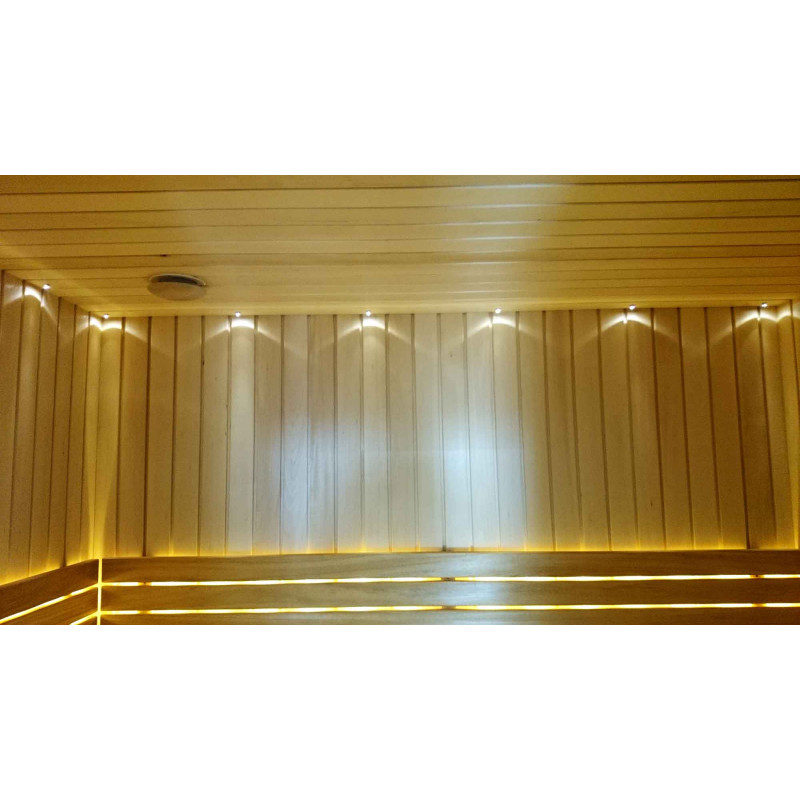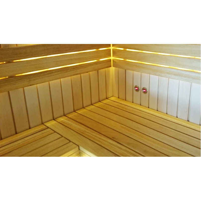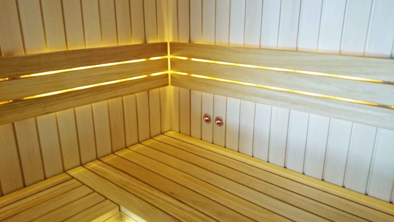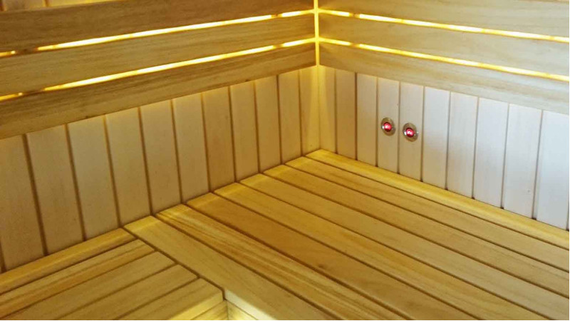 A padok fekete égerfából készültek. A fekete éger nem melegszik fel a forró szaunában, így a felülettel érintkezve nem lehet megégni. Emiatt a fekete éger tökéletes a szauna padokhoz.