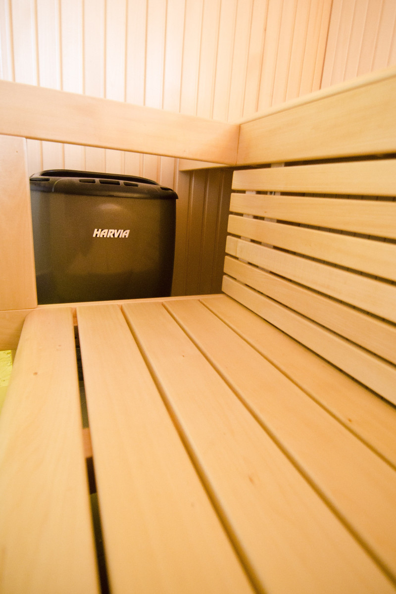 Világítás - A fa háttámla alá szerelt Harvia lámpák biztosítják a szauna pihentető hatásának egy részét.