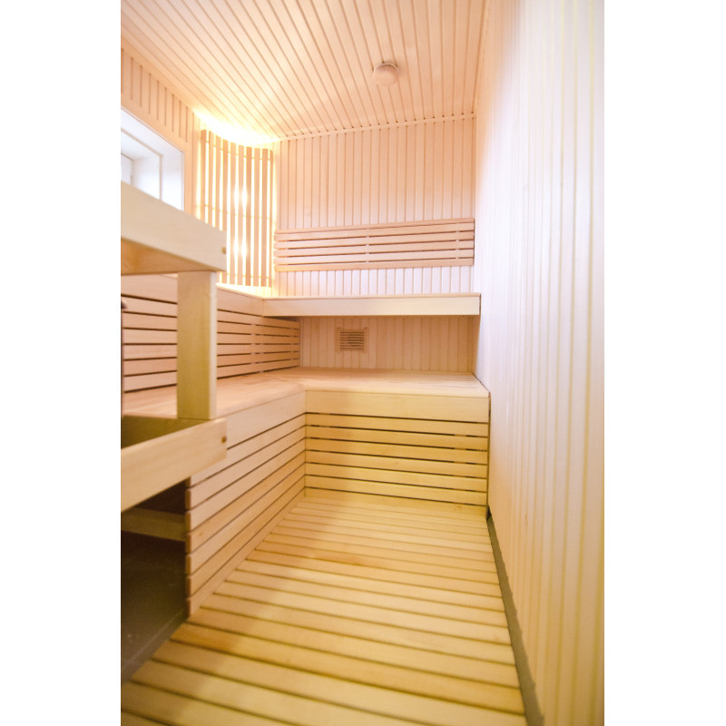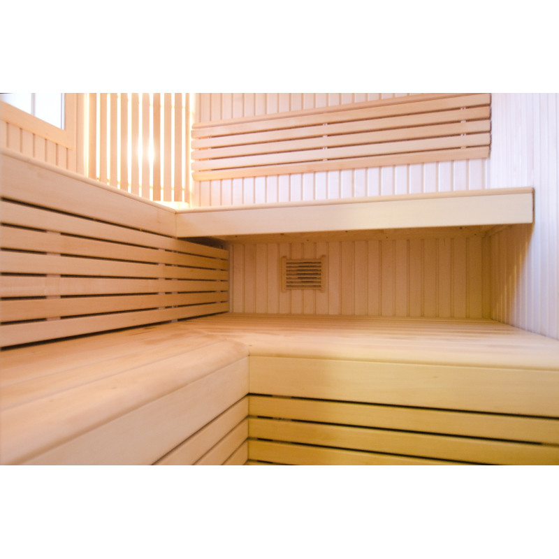 A falburkolatok és padok a legjobb minőségű hársfából készülnek. A fa rendkívül könnyű, így térérzetet ad a szaunának.