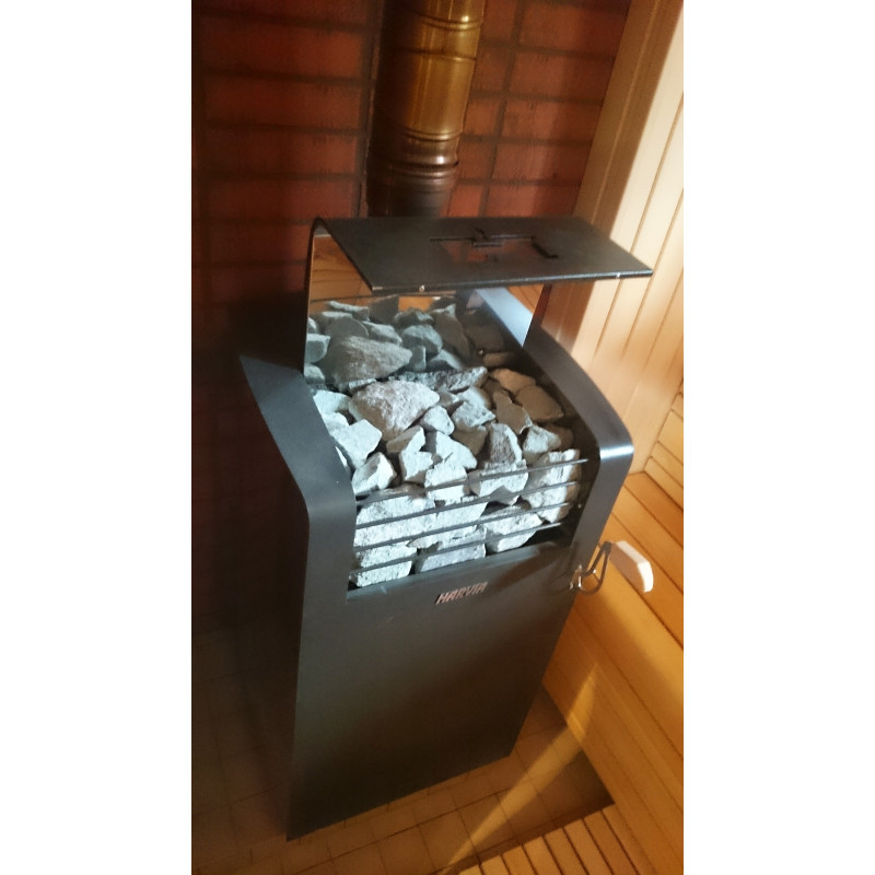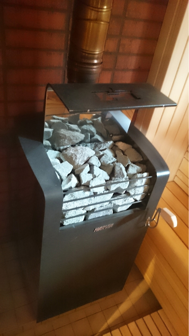 A szaunában szellőztetés biztosított, a szaunában pedig kémény van beépítve kályhával. A fűtőtest zárt típusú, amely hőt halmoz fel és sok gőzt ad. Melegítés közben a fedelet lezárják, vizet öntenek a kövekre - kinyitják.