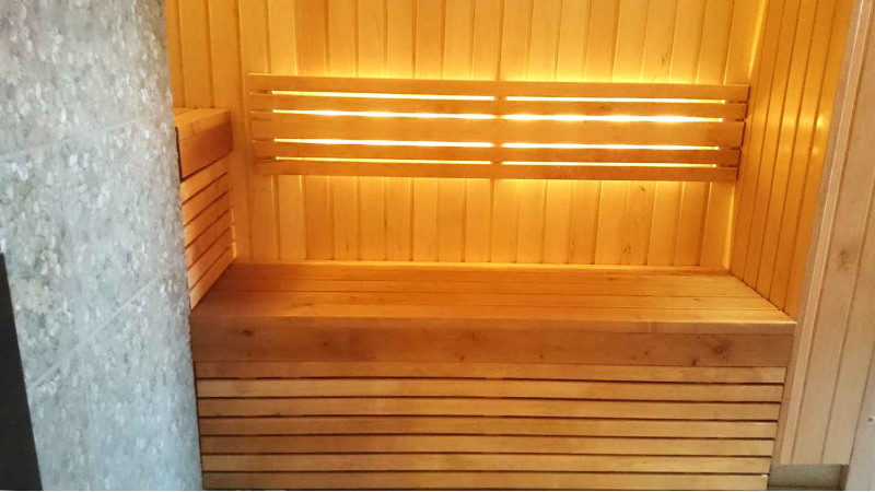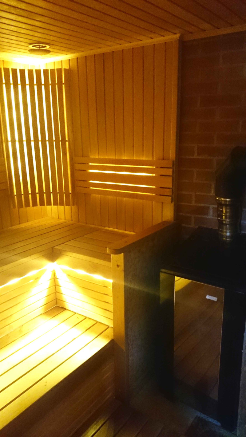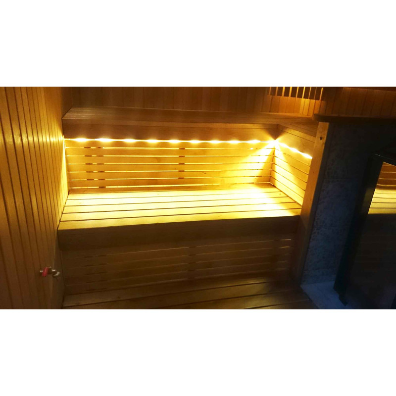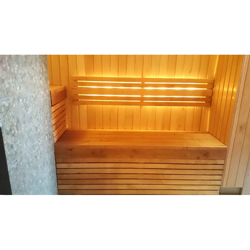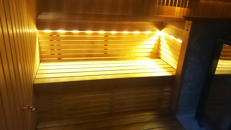 A szauna világítása nagyon fontos elem, mert a világítás az, ami a szauna relaxáló hatásának részét képezi. Ez a szauna LED lámpákkal van felszerelve a mennyezeten, a nyugágyak és a háttámlák alatt. A lámpatestek ellenállnak a nedvességnek és a magas hőmérsékletnek.