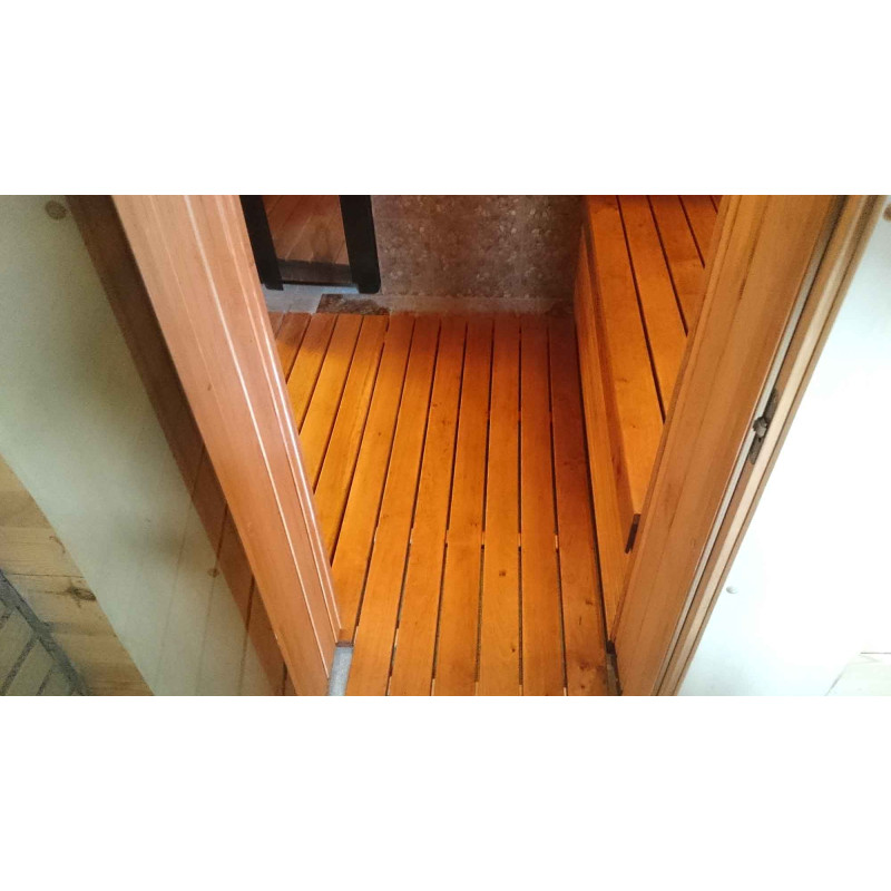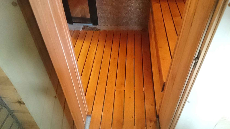 A szauna intenzív használatra alkalmas kályhával van felszerelve - Narvi Steam Master. A nagy teljesítményű készülék akár 100 kg követ is elbír. Ez a zárt típusú fűtőberendezés hőt halmoz fel és sok gőzt termel. Zárt fedél alatt nagy mennyiségű kövekben hő halmozódik fel. Így a szauna nem melegszik túl, és a levegő sem szárad ki. A fedél kinyitásával vizet öntünk a kövekre.