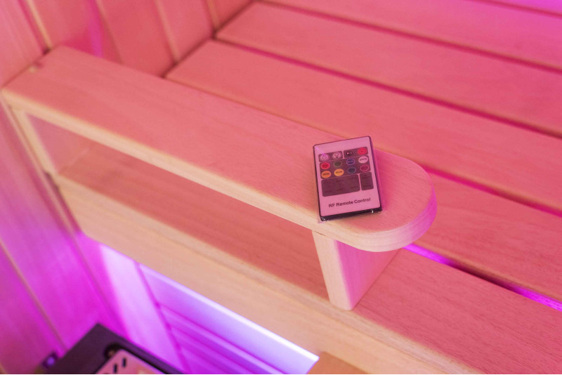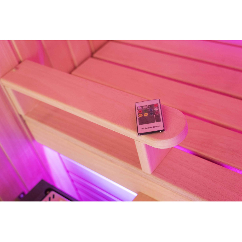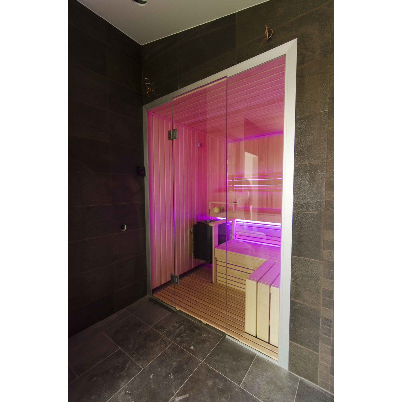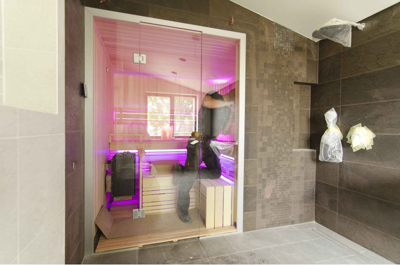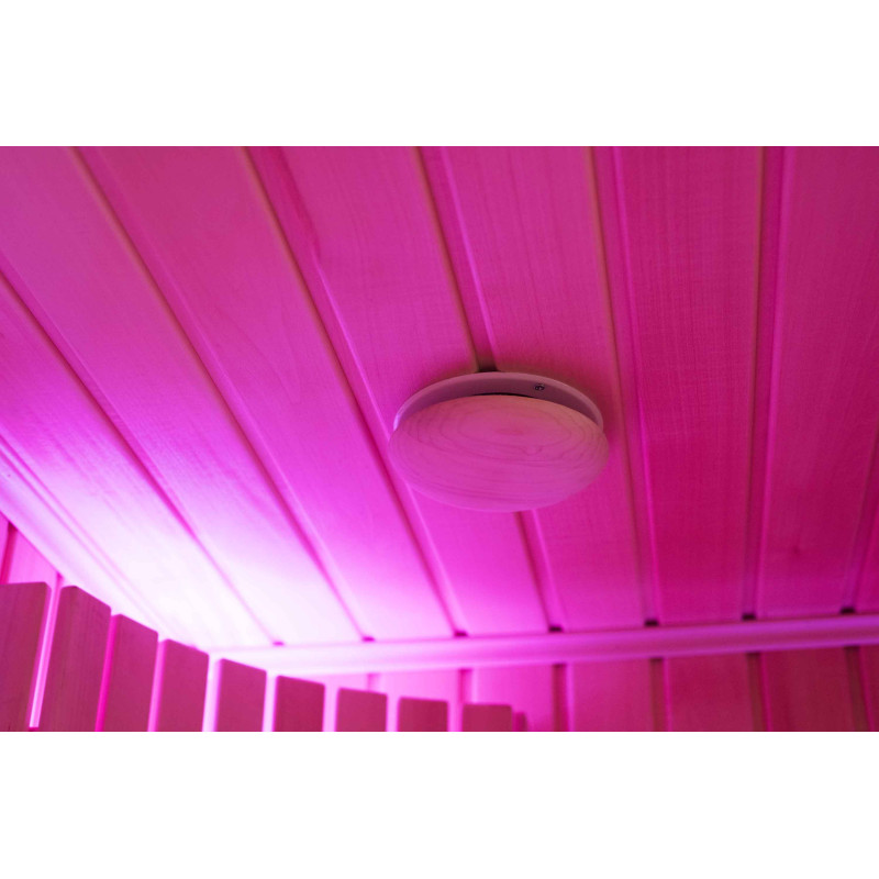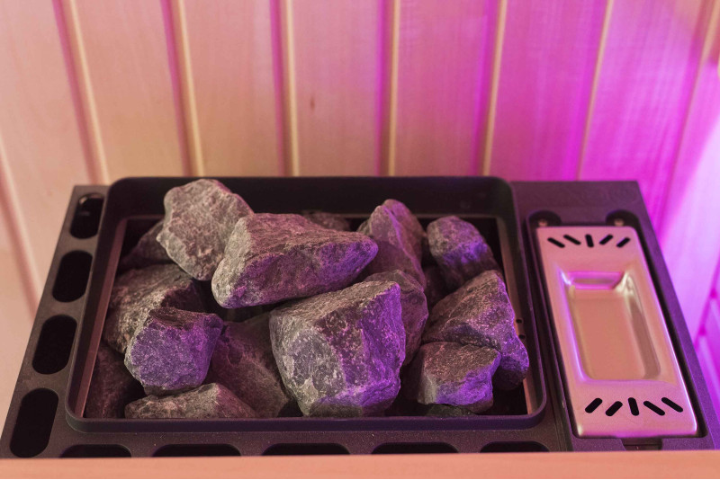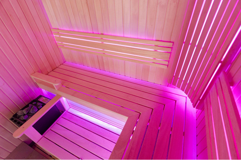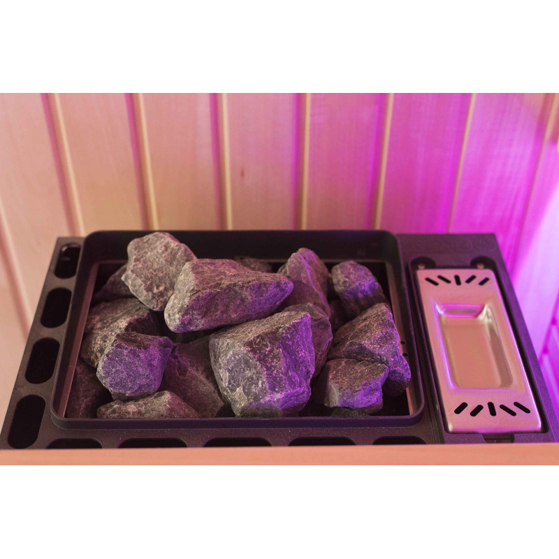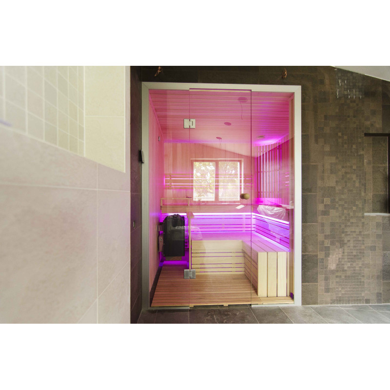 A szauna belseje a legmagasabb minőségű hársfából készült, a napozóágyak abachi fából készültek - nem fűtöttek és tökéletesek a szaunához.