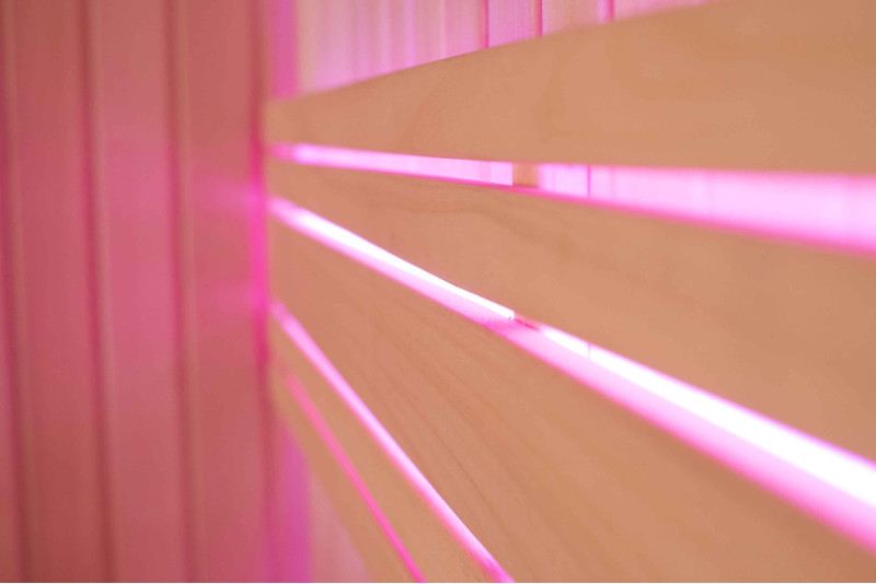 A napozóágyak és háttámlák alatti LED színű világítás a panelen állítható. A színtartományt és az intenzitást manuálisan vagy automatikusan módosíthatja.