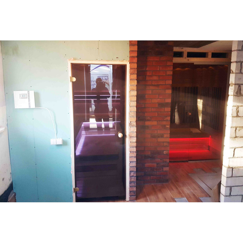 Szaunaajtó 80 x 200 cm, ragasztott keményfa keret, színezett edzett üveg szárny.